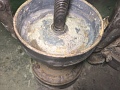 ギヤ・プーラをしっかり締めてから、大ハンマでセンタ・ボルトの頭をガツンと1発叩きます。