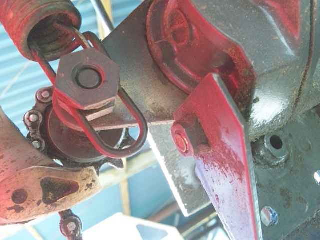 テンション・フックとスプロケット軸の隙間が2~3㎜になるまで、アジャスト・ボルトを締めてスプリングを張ります。