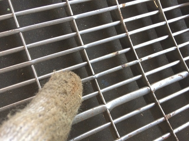 左写真で分かるように、縦横が交差する横棒を保持している部分の多くで、摩耗して横棒が剥き出しになっています。