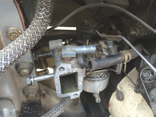 ガバナ・ロッドとロッド・スプリング、そして燃料ホースを外してキャブレータを取り外します。