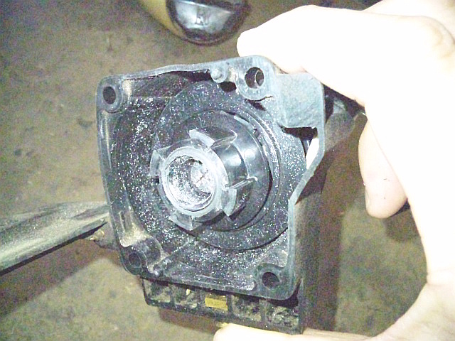 キャブレータを分解してみるとダイヤフラム・メタリング(左写真中央)が完全に硬化していました。