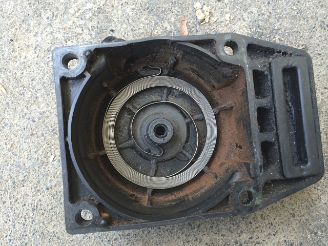 ゼンマイをスタータ・ケースから外すと、左写真のように大きく広がります。