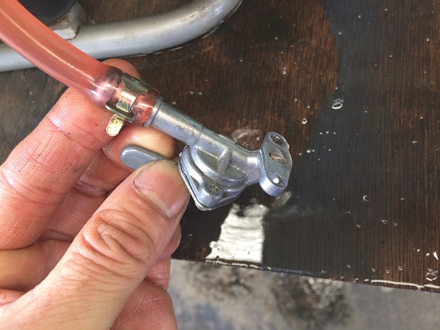 まずは、燃料がしっかり出ているか確認するため、燃料コックを外します。