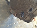後車軸ケースを慎重に外したので、左写真のようにお粗末な状態ですが何とかブレーキ・ディスクを落とさずに済みました。