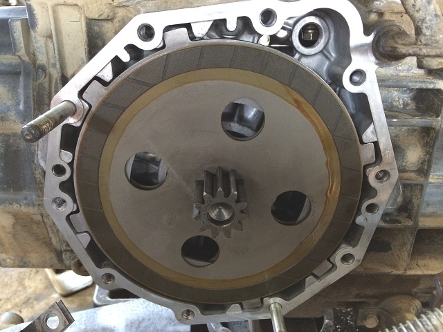 ここから後車軸を抜いてオイル・シールを交換するのですが、後車軸を抜くには遊星歯車装置(プラネタリ・ギヤリング)を外さないといけません。