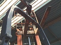 安全フレームは手で持っても大して重たくありませんが、フォーク・リフトで軽く吊っておいてから外します。