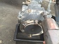 左写真のように、油圧ジャッキを使いギヤ・ケースを入れます。